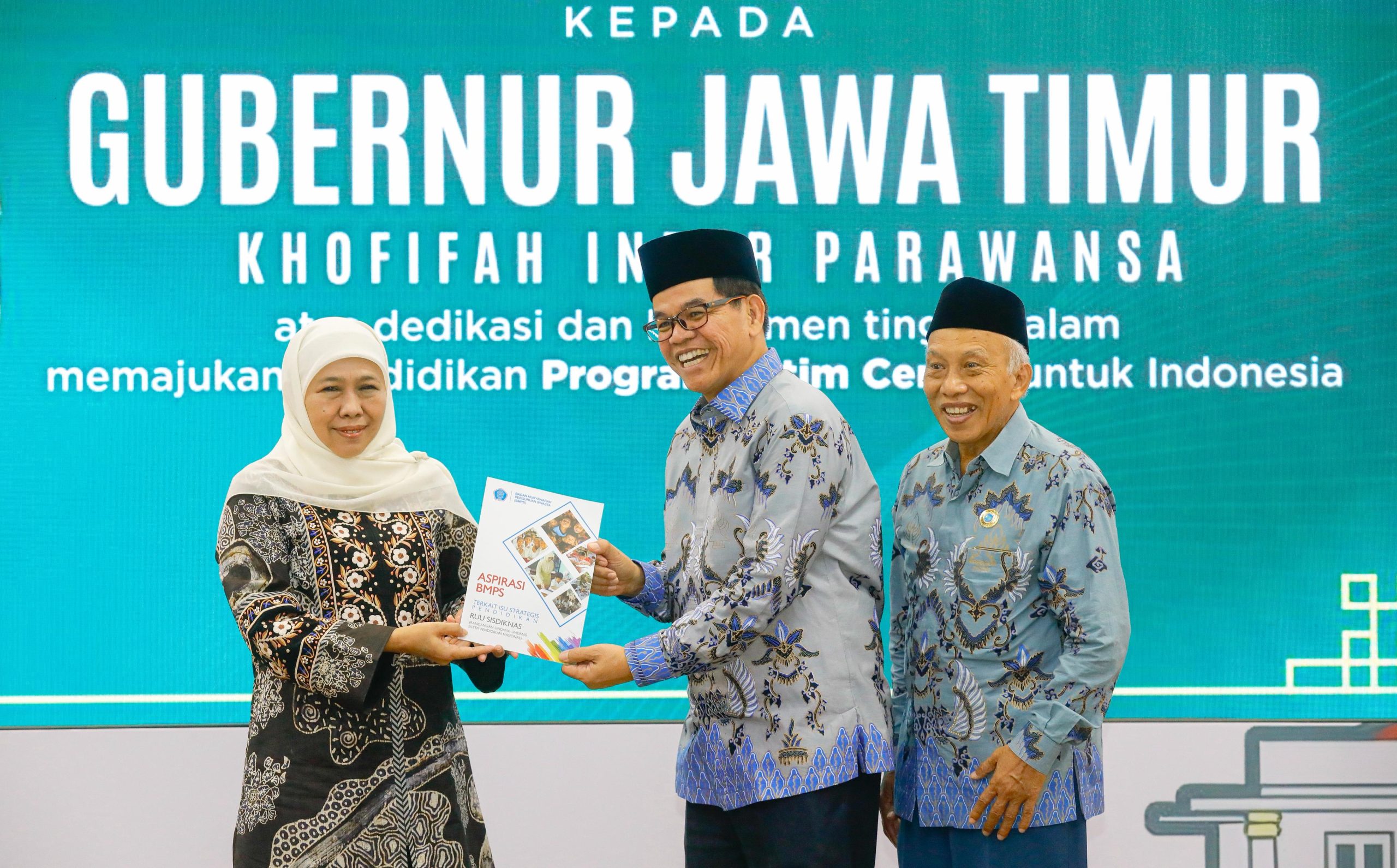 Hal ini disampaikan Gubernur Jatim Khofifah Indar Parawansa menerima penghargaan dari Badan Musyawarah Perguruan Swasta (BMPS) atas komitmen dan dedikasinya dalam memajukan pendidikan di Jawa Timur, melalui visi besar Jatim Cerdas untuk Indonesia yang diserahkan langsung oleh Ketua Dewan Pimpinan Wilayah (DPW) BMPS Abdullah Sani kepada Gubernur Khofifah, dalam rangkaian pelantikan pengurus DPD BMPS kabupaten/kota se-Jatim masa bakti 2025–2030 yang digelar di Dinas Pendidikan Jatim, Sabtu (24/1/2026).