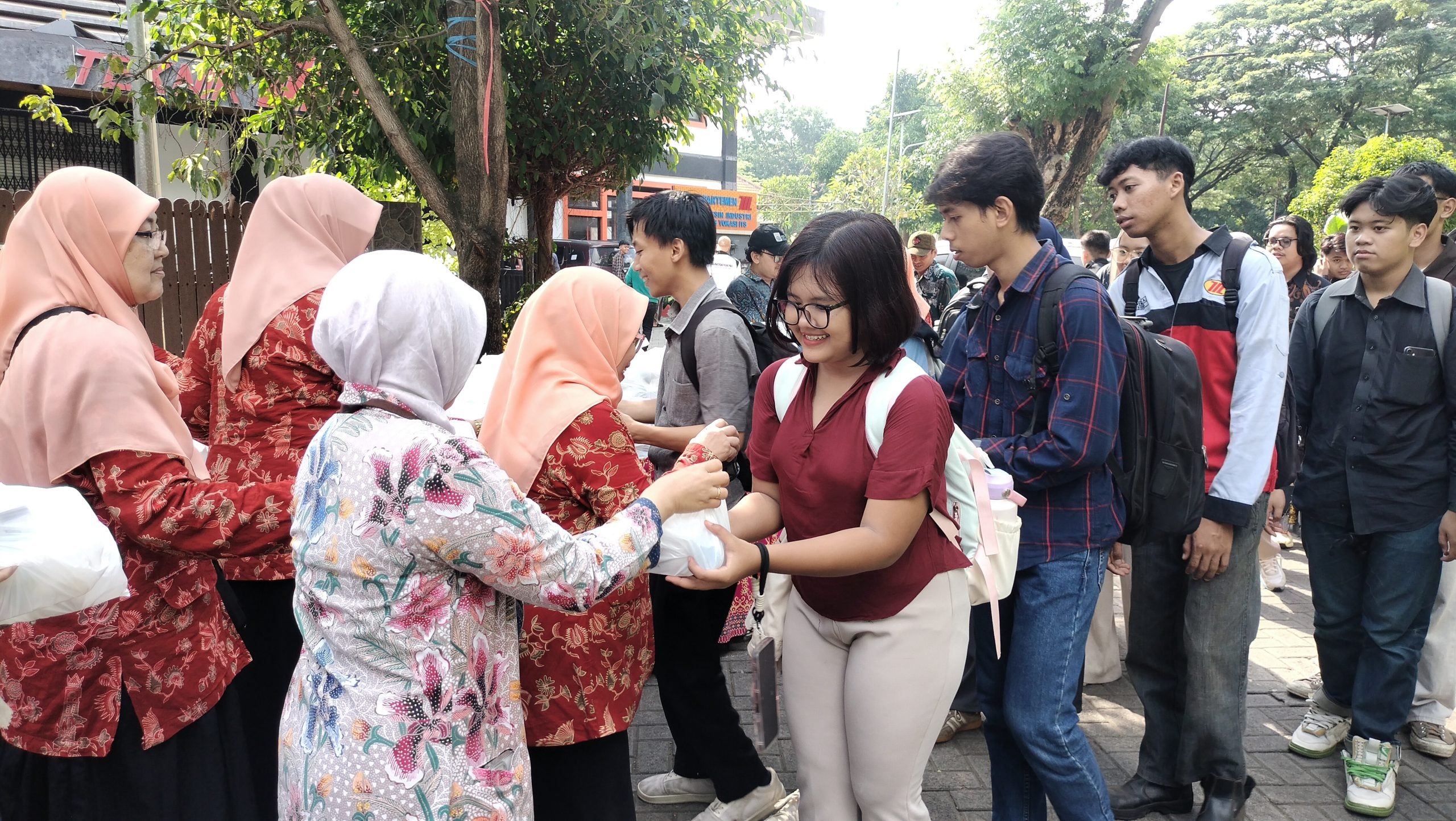 Sementara itu di lapangan, aksi berbagi keberkahan ini disambut dengan sangat baik dan antusias para siswa. Seperti yang terlihat di salah satu lokasi pembagian, yakni di area gedung Fakultas Vokasi ITS, terlihat antusiasme mahasiswa menciptakan antrean yang padat dan memanjang. Beberapa siswa bahkan hadir lebih awal sebelum kegiatan dimulai.